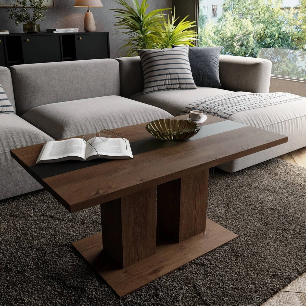 Konferenční stolek Salem dub lefkas / černý moderní designový nábytek odolný proti polití horní desky