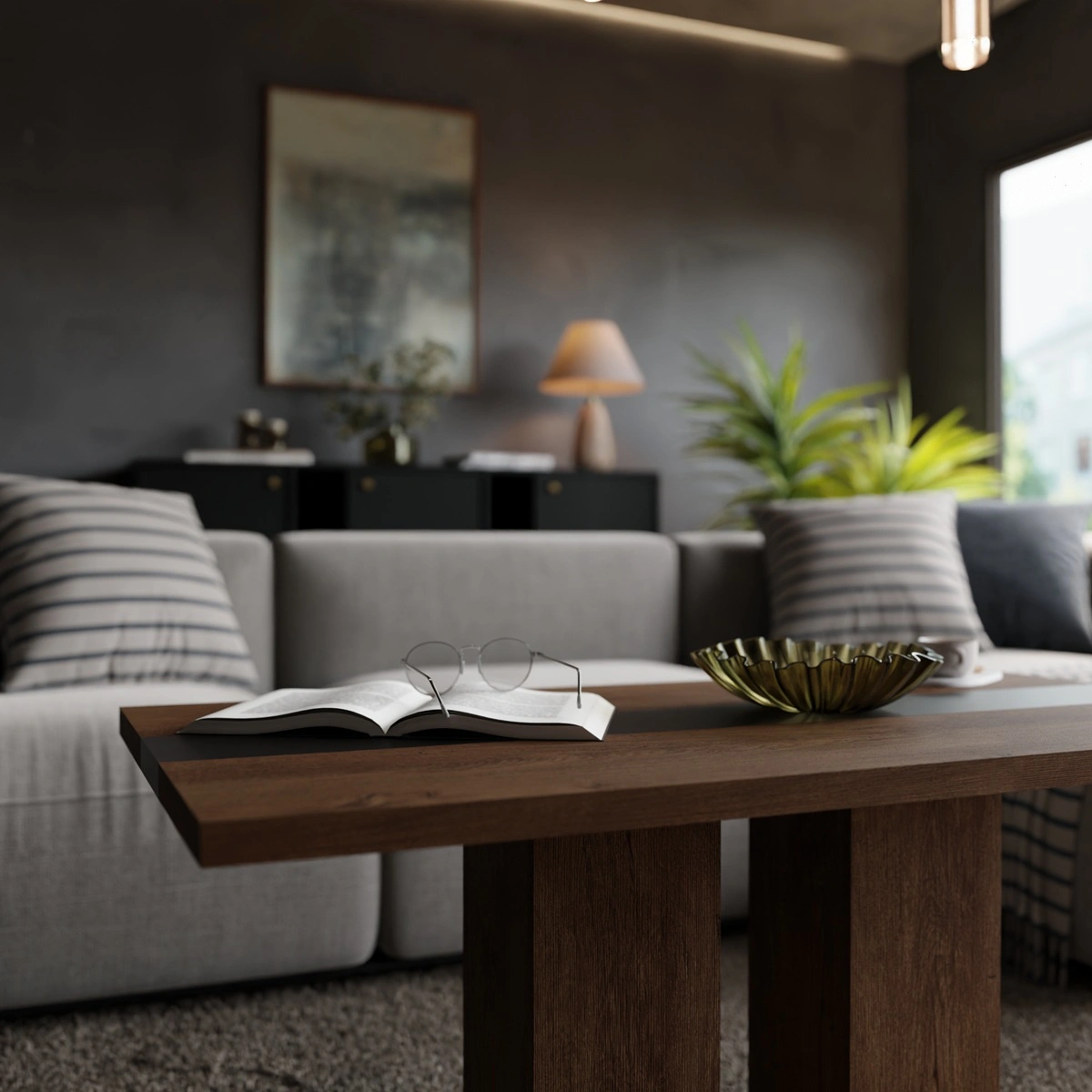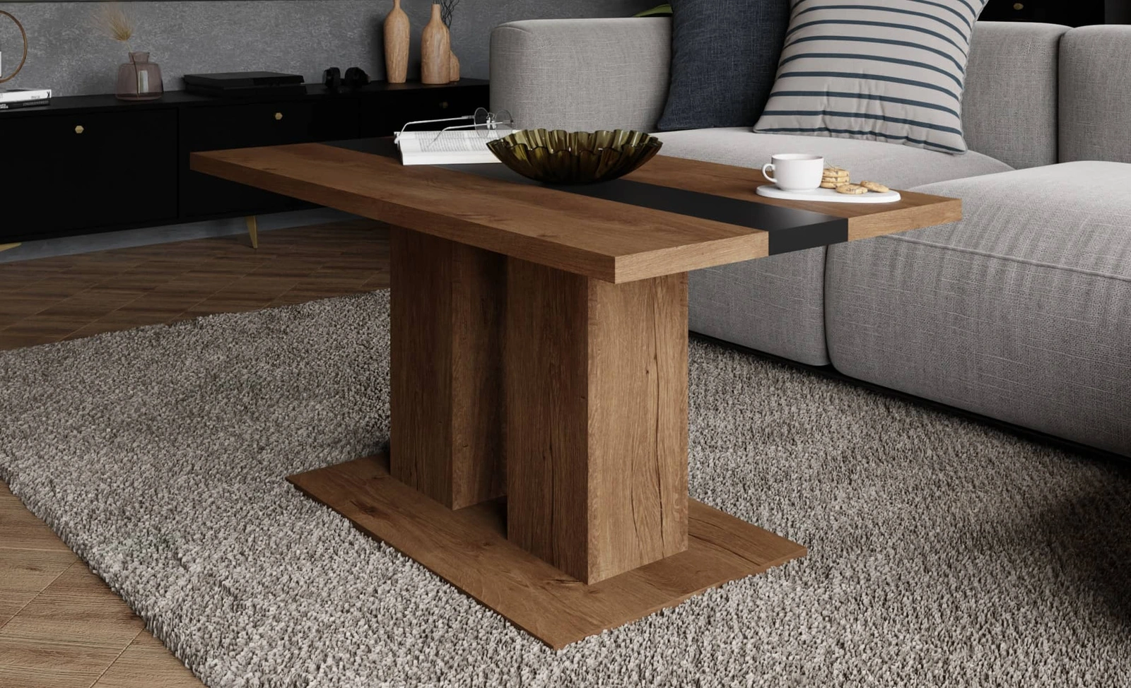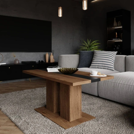 Konferenční stolek Salem v provedení dub lefkas s černou vložkou je stylový kus nábytku, který se skvěle hodí do každého obývacího pokoje nebo zasedací místnosti.