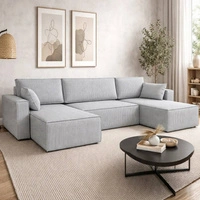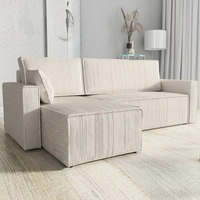Rohová sedací souprava s funkcí spaní Rebenes U béžová univerzální rohová sedací souprava trojrozměrná látka s výraznými pruhy nádoba na lůžkoviny