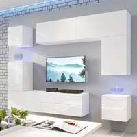 Paleo bílá / bílý lesk Minimalistický design nástěnné skříňky do obývacího pokoje nebo zasedací místnosti Systém push to open