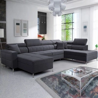 Rohová sedací souprava s funkcí spaní Nausa III černá pravá sametová stylová pohodlná rohová sedací souprava nastavitelné opěrky hlavy nádoba na lůžkoviny