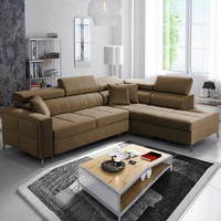 Rohová sedací souprava s funkcí spaní Nausa III světle hnědá pravý roh sametová stylová pohodlná rohová sedací souprava nastavitelné opěrky hlavy nádoba na lůžkoviny