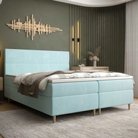Kontinentální postel Bing 120x200 tyrkysová v moderním skandinávském stylu s čalouněným čelem postele s úložným boxem