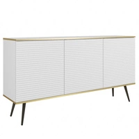 Luxusní komoda 160 cm bílá elegantní design stylová drážkovaná čela korpus komody doplněný zlatým lemováním černé kovové nohy