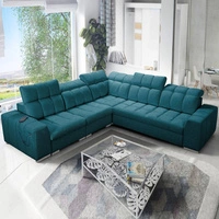 Luigi VI rohová pohovka s funkcí spaní modrá levá strana stylová rohová pohovka s kontejnery na lůžkoviny potažená měkkou látkou