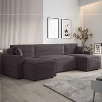 Rohová sedací souprava s funkcí spaní Brandon U grafitový obal na lůžkoviny měkká tkanina s výrazným smyčkovým povrchem