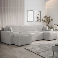 Rozkládací pohovka Brandon XL Bis béžová moderní designová tkanina s výrazným smyčkovým povrchem nádoby na lůžkoviny