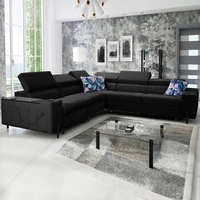 Rohová sedací souprava s funkcí spaní Belvi III černá levá Pohodlná a elegantní rohová sedací souprava do obývacího pokoje s praktickým úložným prostorem na boku