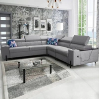 Rohová sedací souprava s funkcí spaní Belvi III šedá levá pohodlná a elegantní rohová sedací souprava do obývacího pokoje s praktickým úložným prostorem na boku