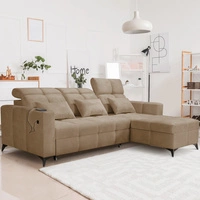 Pohovka s funkcí spaní Laredo béžová pohodlná a stylová pohovka do obývacího pokoje s nastavitelnými opěrkami hlavy jemná velurová tkanina