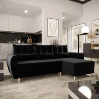 Rohová sedací souprava s funkcí spaní Rovigo černá pravá elegantní rohová sedací souprava ve skandinávském tvaru velká přihrádka na lůžkoviny