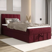 Kontinentální postel Casey 90x200 vínová v moderním skandinávském stylu s čalouněným čelem postele s úložným boxem