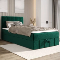 Kontinentální postel Casey 120x200 lahvově zelená v moderním skandinávském stylu s čalouněným čelem postele s úložným boxem