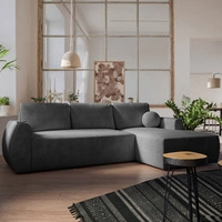 Rohová sedací souprava s funkcí spaní Colio graphite pravá strana stylová rohová sedací souprava se zajímavým tvarem velurová látka dekorativní polštář koule