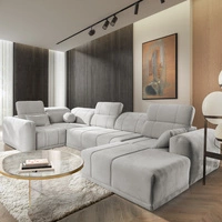 Rohová sedačka s funkcí spaní Cetara III šedá pravá ergonomická rohová sedačka s posuvným opěradlem a nastavitelnými opěrkami hlavy