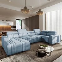 Rohová sedačka s funkcí spaní Castel XII modrá levá strana stylová a pohodlná rohová sedačka do obývacího pokoje funkční nastavitelné opěrky hlavy