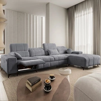 Rohová pohovka s funkcí spaní Penejos VII šedá levá rohová stylová pohovka s úložným prostorem na lůžkoviny pohodlné nastavitelné opěrky hlavy