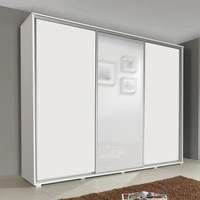 Posuvná šatní skříň se zrcadlem Silwer 255 cm bílá moderní design povrchová úprava ABS a hliníková vodítka dveří