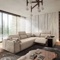 Rohová sedací souprava s funkcí spaní Tesalia V mincovna levá pohodlná rohová sedací souprava se zásuvkou a funkcí posuvného opěradla