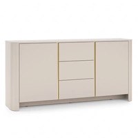 Komoda Bari 168 cm béžová moderní designová komoda do obývacího pokoje oválného tvaru poutavé zlaté doplňky