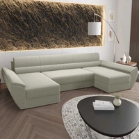 Rohová sedací souprava s funkcí spaní Fogu U slonová kost pohodlná a stylová rohová sedací souprava s jednoduchým designem manšestrová textilní nádoba na lůžkoviny
